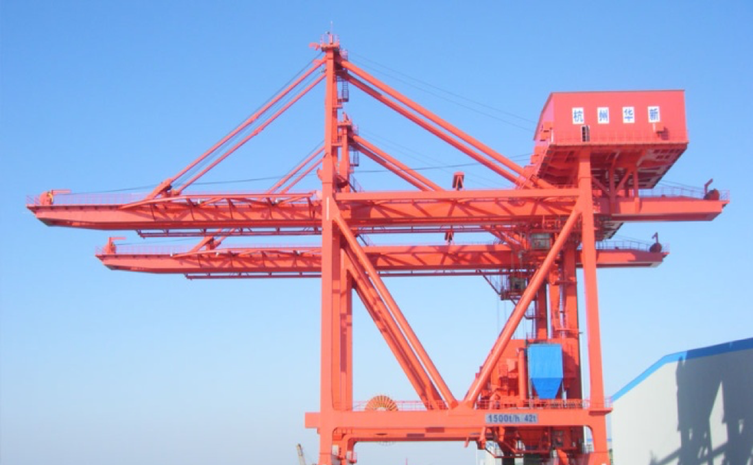 公司于1990年成功研发公司首台台四卷筒牵引式卸船机试验机,在上海吴泾热电厂投入使用,1993年1台600t/h机房下置的四卷筒牵引式卸船机在华能威海电厂投入使用,至今已运行近30年,设备情况良好。经过不断地发展,不断地积累经验,不断地研发创新,华新机电生产制造的卸船机技术在不断地升级,产品系列从200t/h~2400 t/h,目前生产制造过的生产率最大卸船机为马来西来亚TJB2400t/h项目,具备设计制造2500~3500t/h卸船机的能力。产品广泛应用于电力、冶金、建材、港口、散货码头等行业,在“一带一路”的伟大创举下,产品陆续出口印尼、马来、菲律宾、新加坡、越南等东南亚国家以及西亚、中东、南美、非洲等地区,产品遍及国内外。