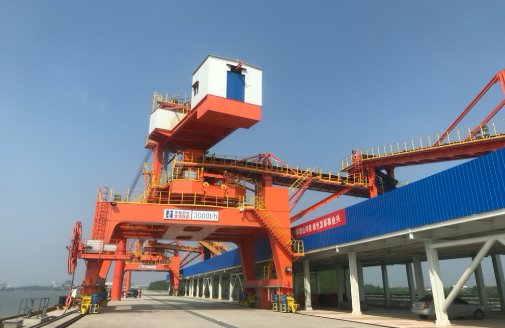 为适应电厂、港口等用户的需求,公司2003年为连云港新陆桥设计总包的3000/1000t/h、2005年为太仓电厂设计总包的1500/600t/h装卸一体机,现已为用户提供了可装多种物料如煤、砂石料、水泥、石膏的装船机、全封闭带除尘环保装船机,生产的最大生产率装船机为南京西坝的4500t/h装船机,后又为池州九神山提供了5台3000t/h装船机于2019年6月正式投入使用。